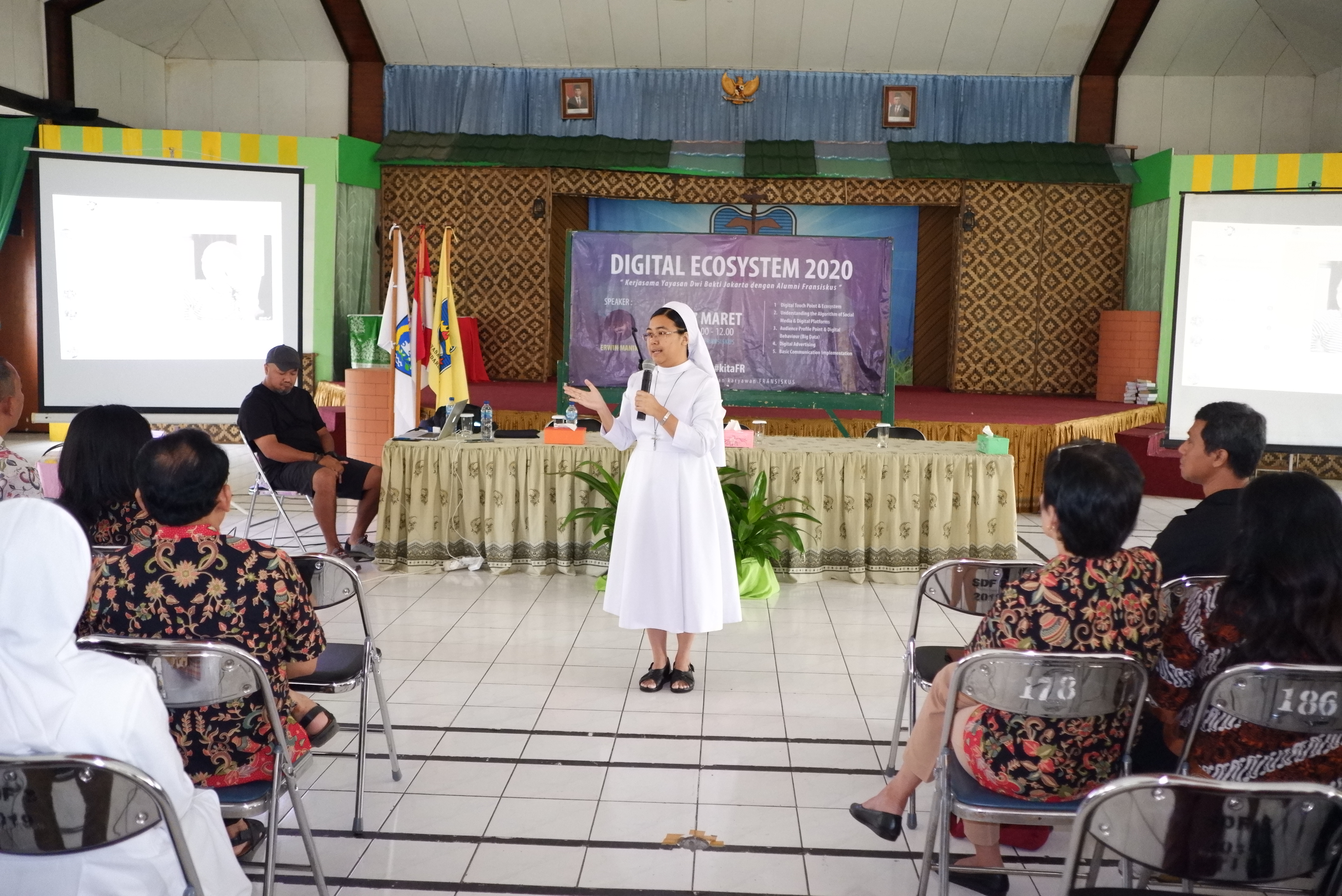 Institusi pendidikan sebagai salah satu komponen dalam memajukan serta mencerdaskan kehidupan bangsa Indonesia harus mampu menyesuaikan diri dengan kemajuan dan perkembangan yang ada. Oleh karena itu, Yayasan Dwi Bakti Jakarta menjawab hal ini dengan melaksanakan Workshop Digital Ecosystem 2020. “Dunia memang tengah berubah. Maka mau tidak mau dan suka tidak suka kita harus tau dan mau menyesuaikannya untuk kepentingan peserta didik kita dan kita berusaha melaksanakannya dalam proses pembelajaran”, kata Sr.Agnesa, Ketua Yayasan Dwi Bakti Jakarta pada pembukaan WORKSHOP DIGITAL ECOSYSTEM 2020 di Aula SD Fransiskus III Kayu Putih, 7 Maret 2020. Pada kesempatan yang sama beliau menyampaikan bahwa Fransiskus Kayu Putih (TK,SD,SMP) tidak kalah dengan sekolah lain diluar sana. Kita memiliki sumber daya manusia yang mumpuni. Oleh karena itu, kita berkewajiban untuk melatih diri secara terus menerus dalam rangka meningkatkan mutu dan kualitas guru serta peserta didik kita.